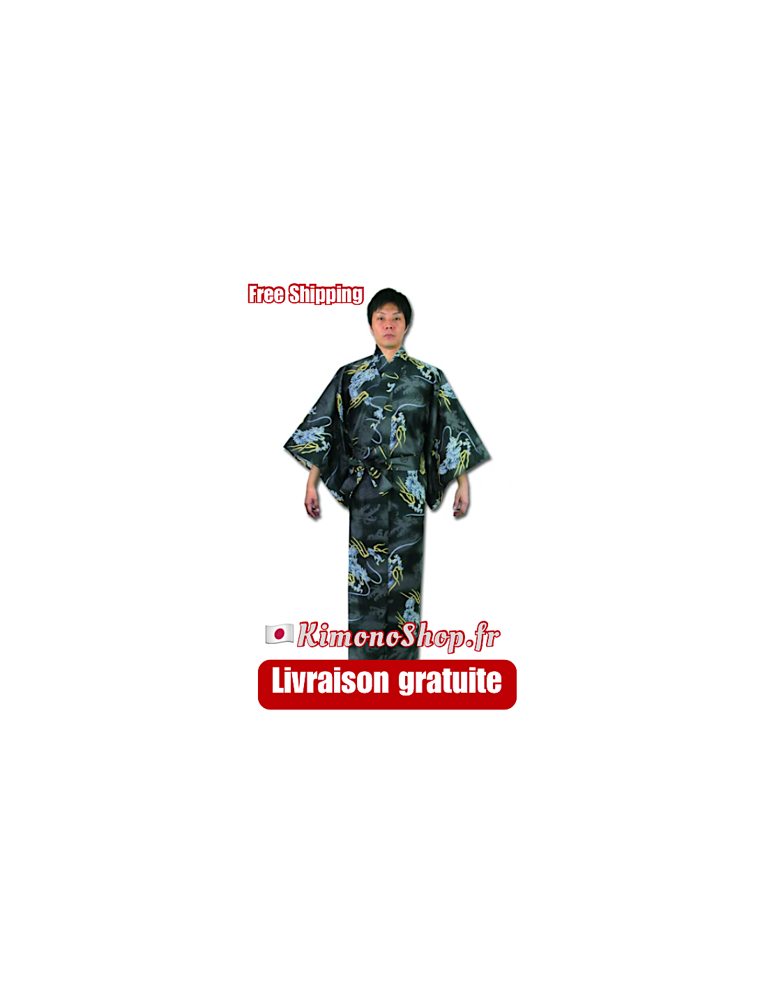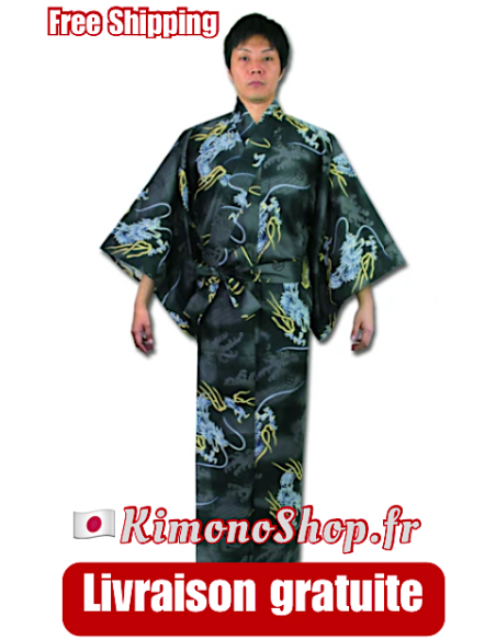 Yukata Homme Dragon Noir Coton