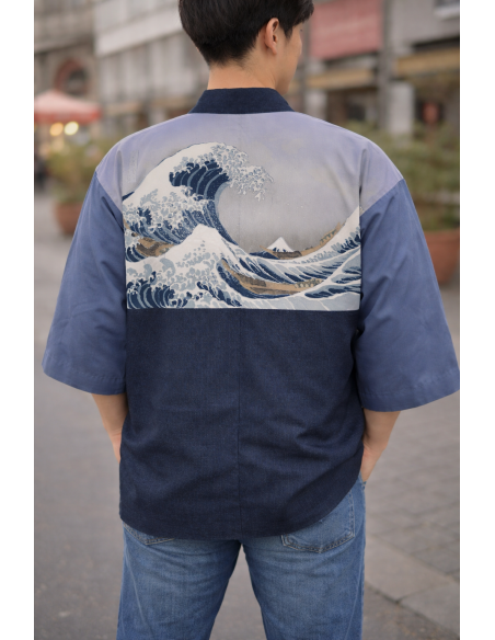 Antique Japanese Silk Haori for Men – Hokusai “Great Wave off Kanagawa” Lining – Made in Japan