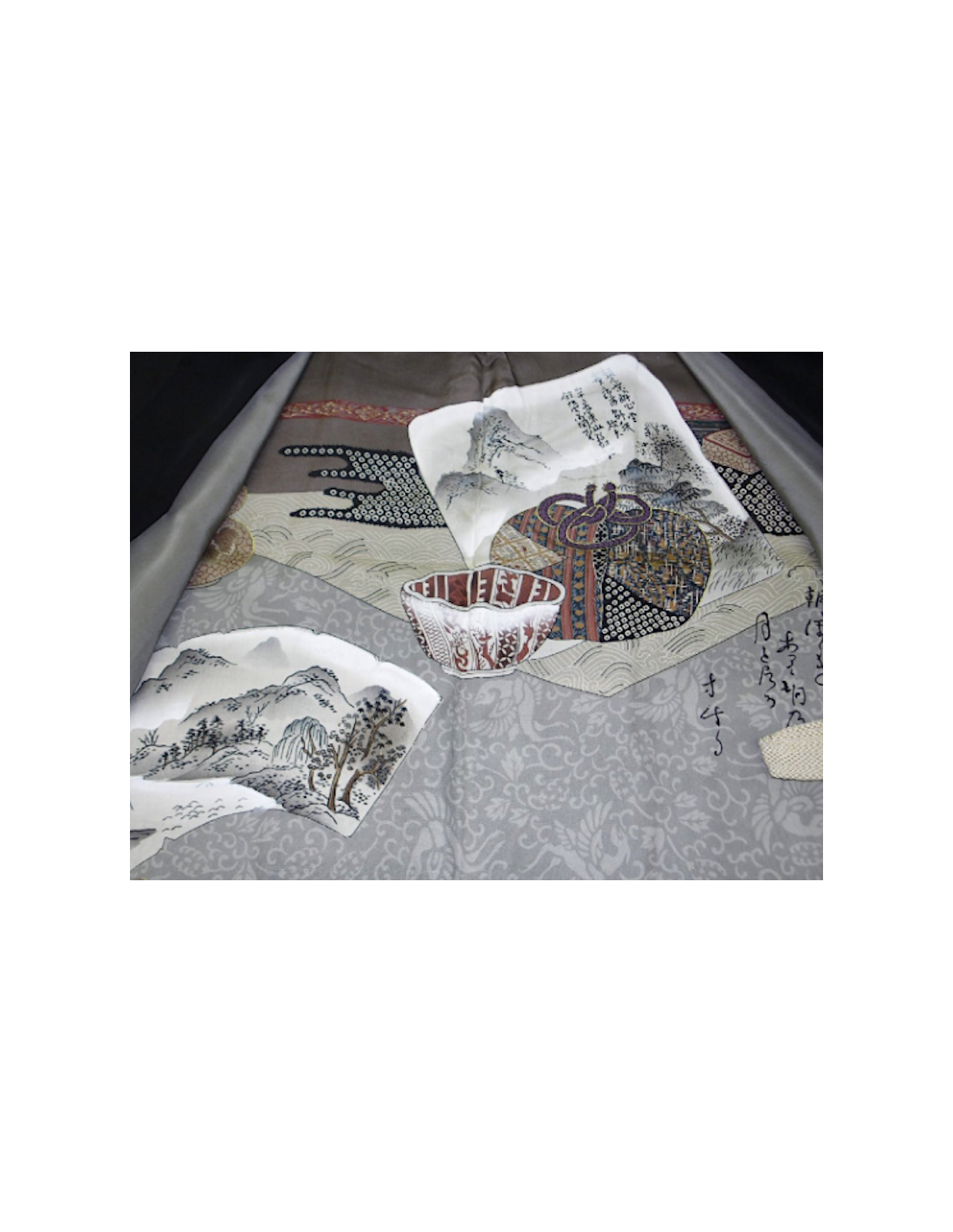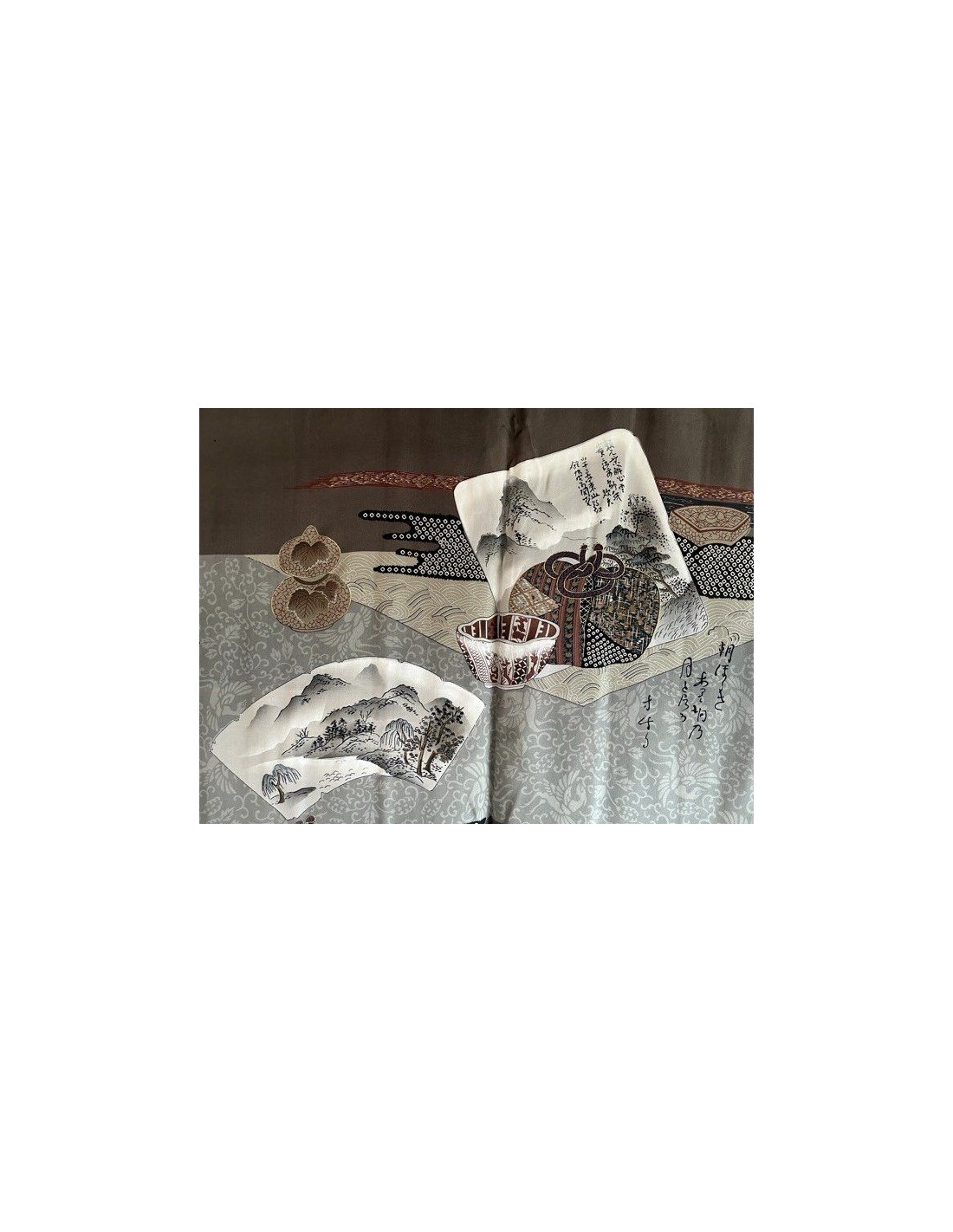 - Lining: Japanese scenic motif printed on light silk