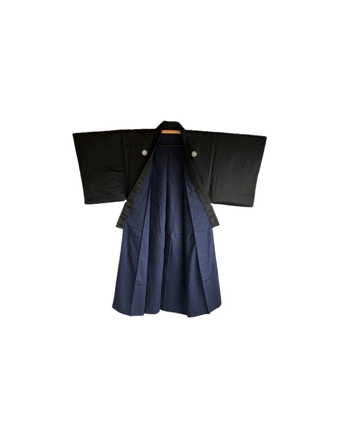 This traditional Japanese men’s ceremonial ensemble (Montsuki) is crafted from luxurious 100% black Habutae silk, a fine and smooth fabric renowned for its elegant sheen and lightweight drape. Each detail reflects authentic Japanese craftsmanship, bringing together timeless tradition and refined aesthetics.