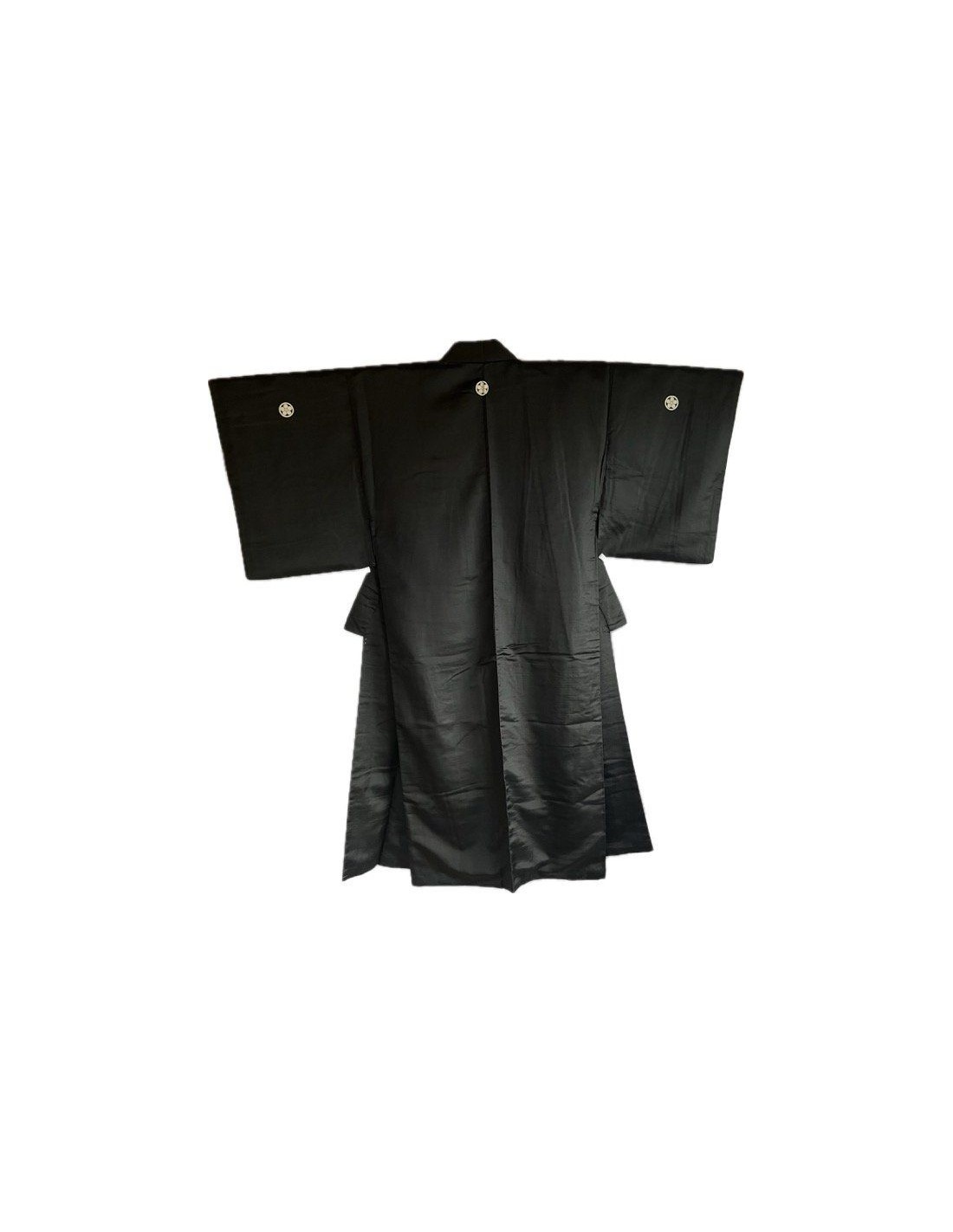A genuine Japanese ceremonial ensemble combining the timeless elegance of black Habutae silk with the noble symbolism of the five “Maru ni Umebachi” family crests. Handcrafted in Kyoto, this refined garment represents the perfect harmony of tradition, artistry, and sophistication.