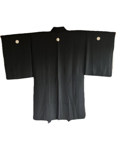 Men's Japanese Haori Black Silk Kenkatabami Montsuki Jinja