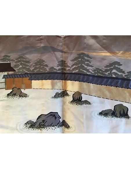 100% soie noire.Le motif surpiqué représente les rochers du jardin japonais sec du célèbre temple Zen "Ryoanji" de Kyoto Fabrication au Japon