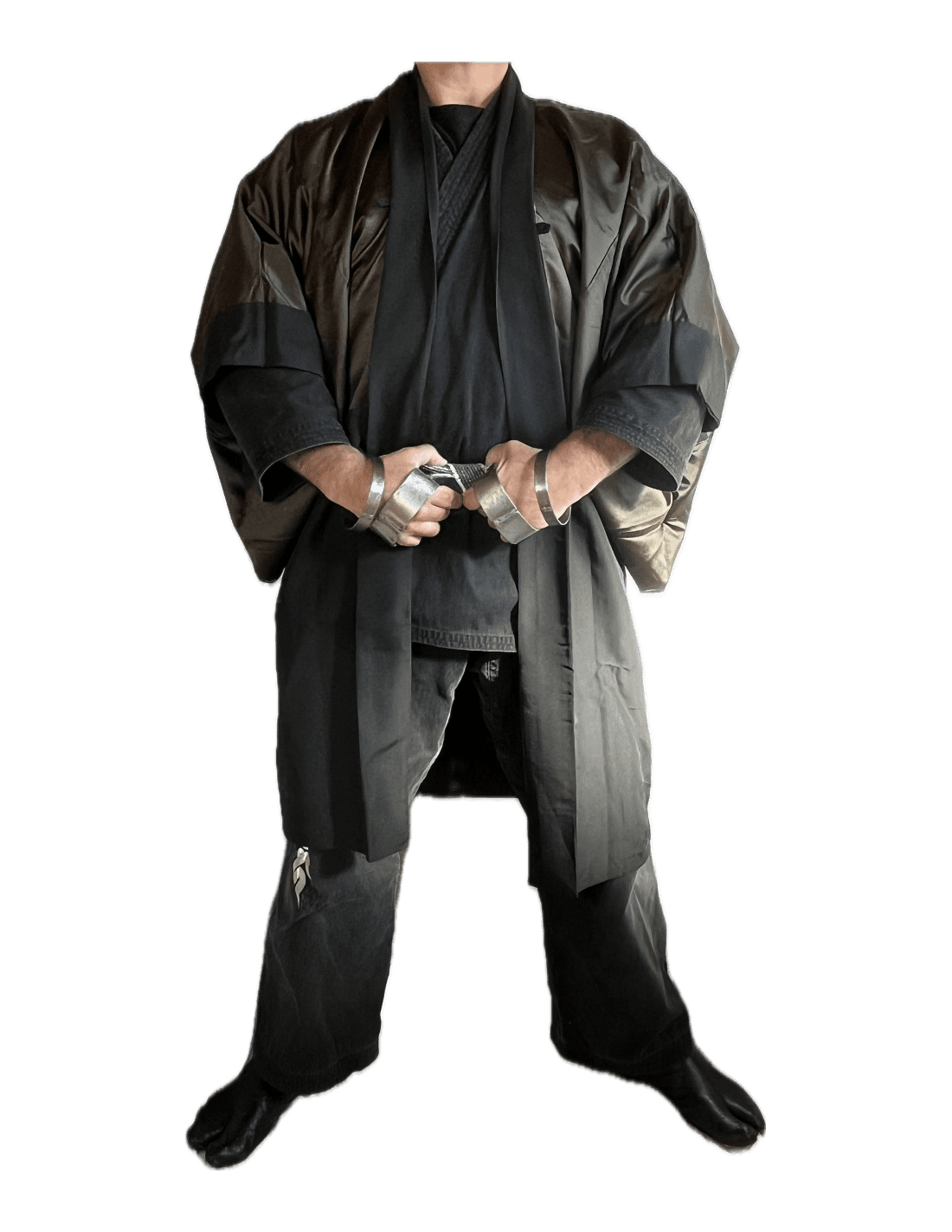 Haori japonais homme en soie noire Dakimyoga Montsuki OchaWashitsu – Maison de la cérémonie du thé