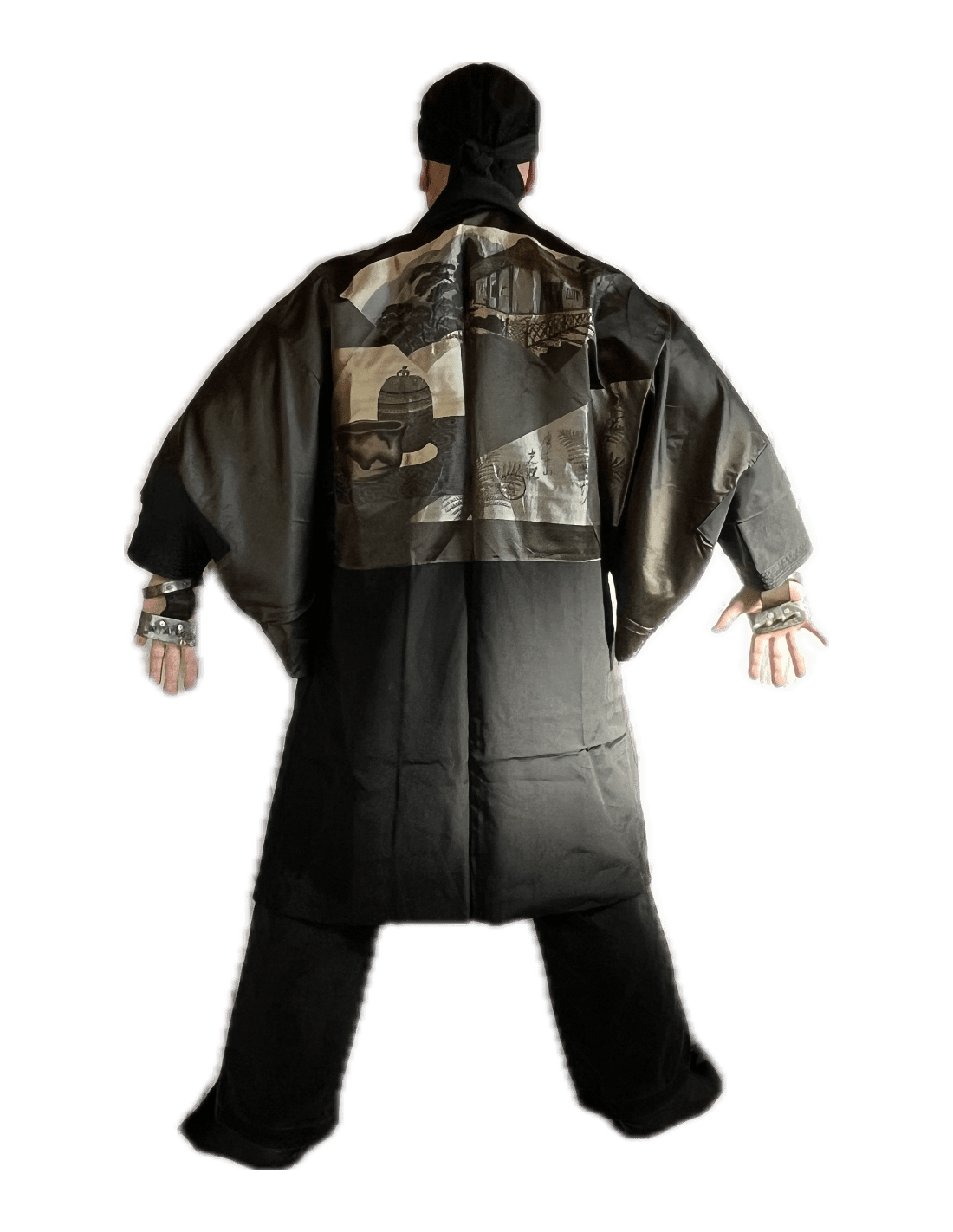 Haori japonais homme soie noire Dakimyoga Montsuki OchaWashitsu – Maison de la cérémonie du thé